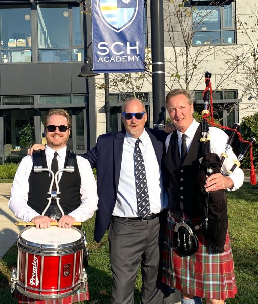 When Dr. Druggan first came to SCH, he learned of the old bagpiping tradition carried over from CHA. As far back as anyone can remember, bagpipers have led processions for several events during the school year, including Convocation, Blue & Blue Day, and Graduation. Druggan also mentioned that CHA once had a bagpiping club, which is thought to have ended sometime around the 1970s.